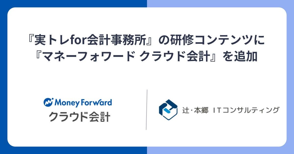 株式会社マネーフォワードは、辻・本郷 ITコンサルティング株式会社が提供する会計事務所向け教育研修サービス『実トレfor会計事務所』の研修コンテンツに、『マネーフォワード クラウド会計』が追加されたことをお知らせします。