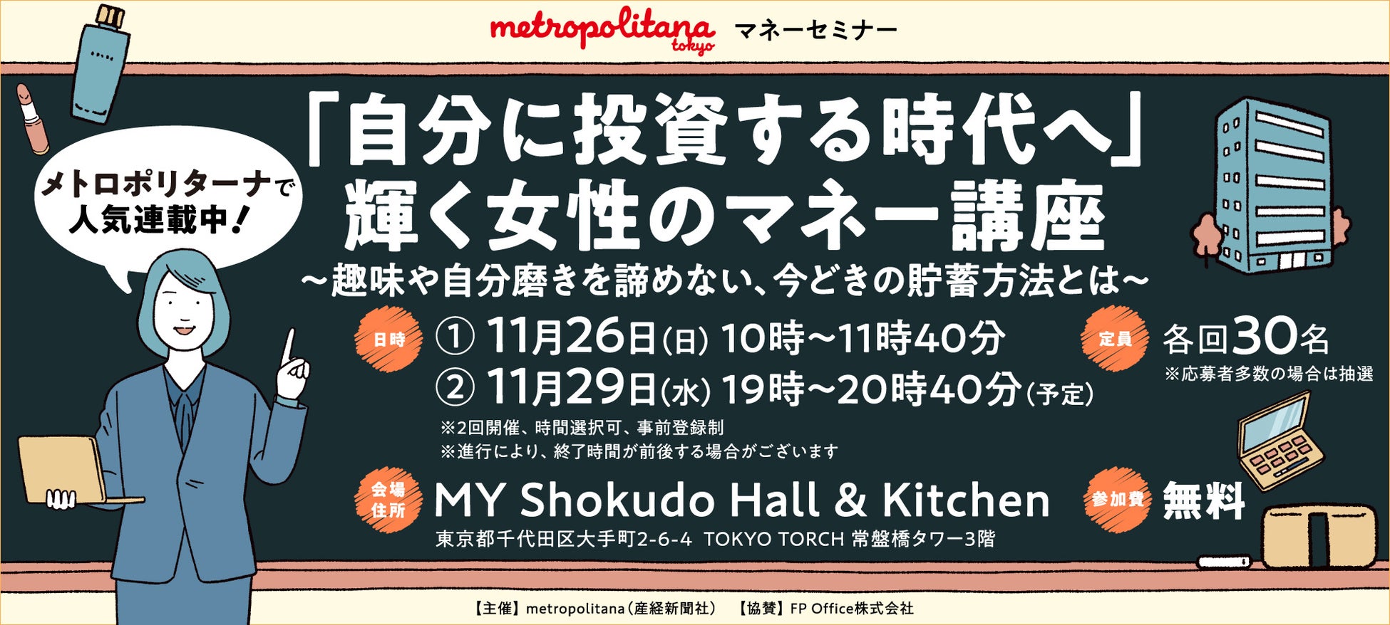 metropolitana マネーセミナー『「自分に投資する時代へ」輝く女性のマネー講座』 11月26日(日)10時&29日(水)19時開催《参加者募集》