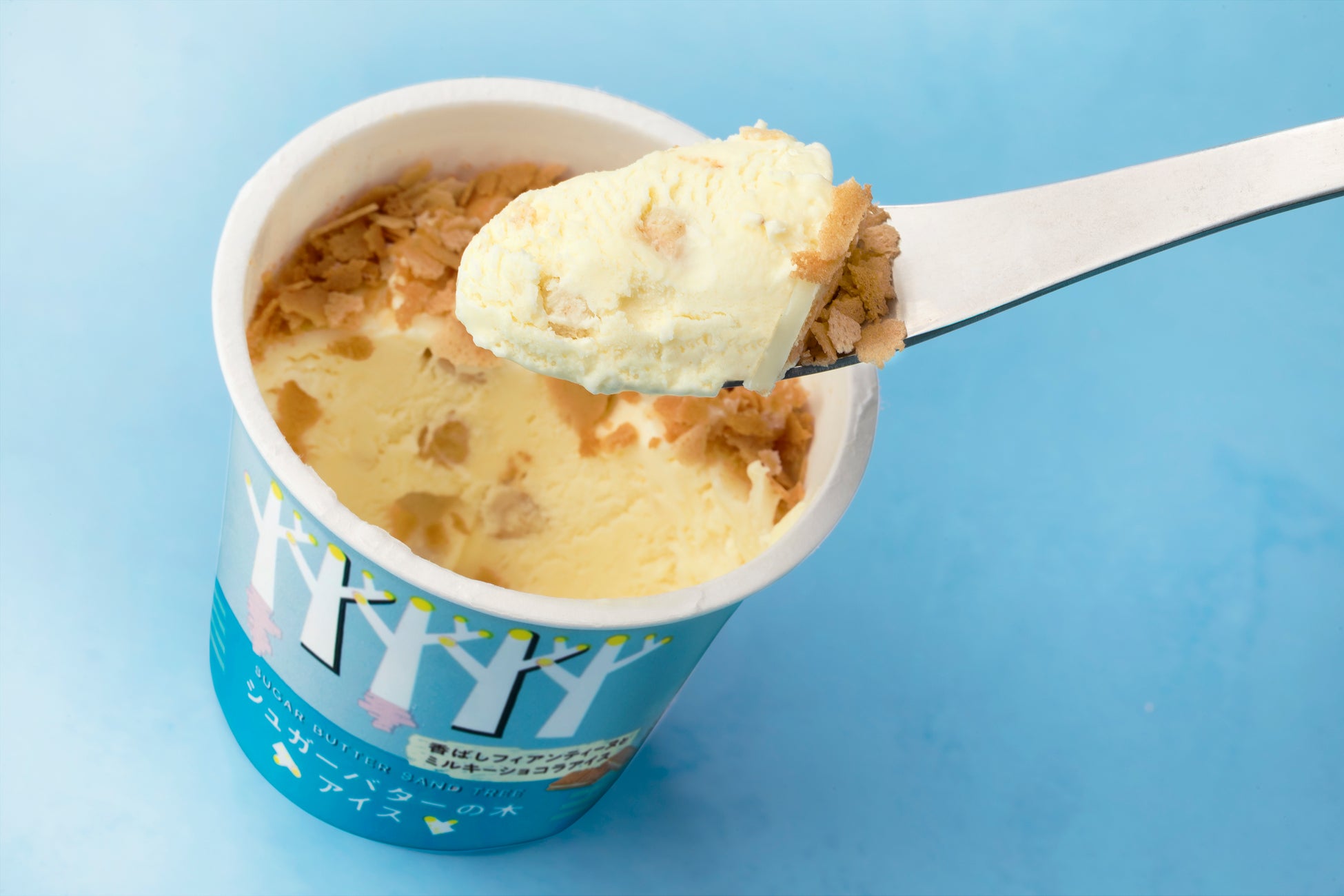 ひ~んやりミルキーな新食感!2種のサクサク生地が香ばしい『シュガーバターの木』らしさ全開のカップアイス