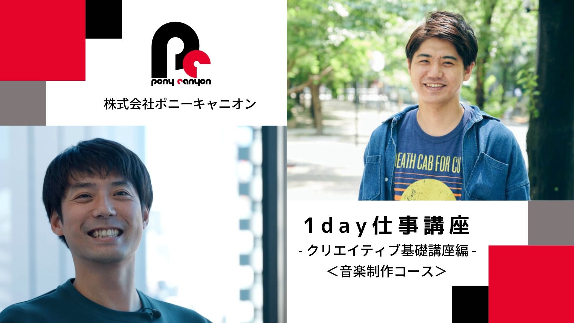 株式会社ポニーキャニオンが、就活生に向けた1day仕事講座『クリエイティブ基礎講座』音楽制作コース編を開催しました。今回、講師として音楽事業本部の淵上恵太と吉野祐治が登場し、音楽制作の仕事について貴重な体験エピソードを交えながら紹介してくれました。どんな内容の講座が行われたのか、その模様をお届けするので、今後の就職活動にぜひ役立ててください!