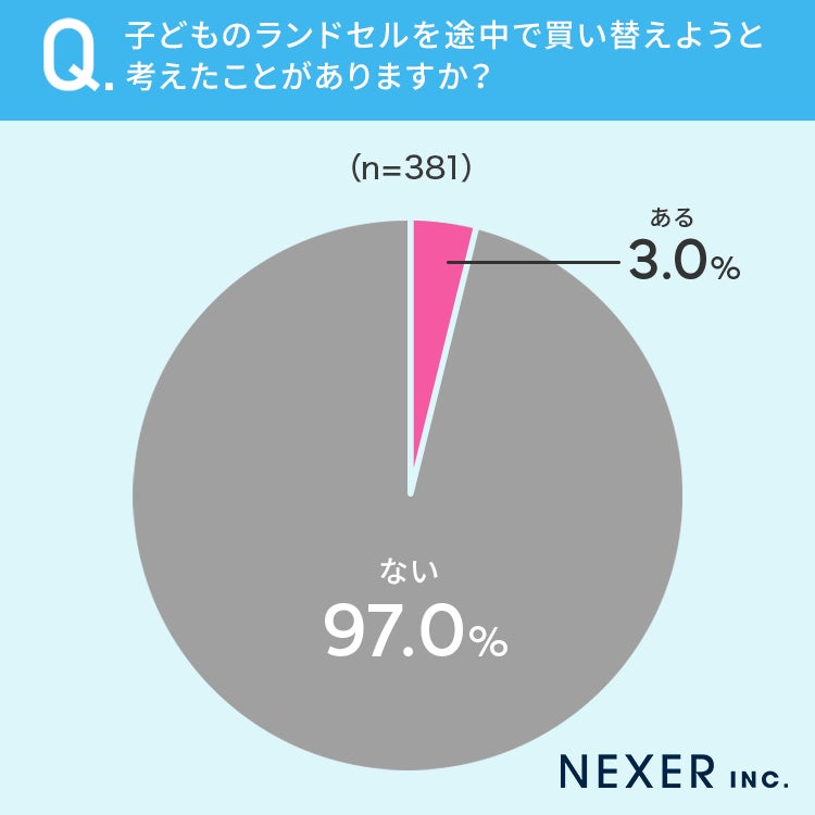 ■3%が、子どものランドセルを途中で買い替えようと考えたことが「ある」と回答