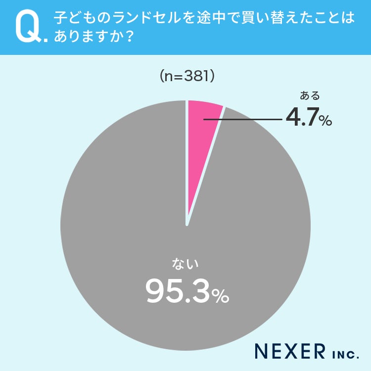 ランドセルを買い替えた経験があるのは、全体の4.7%でした。