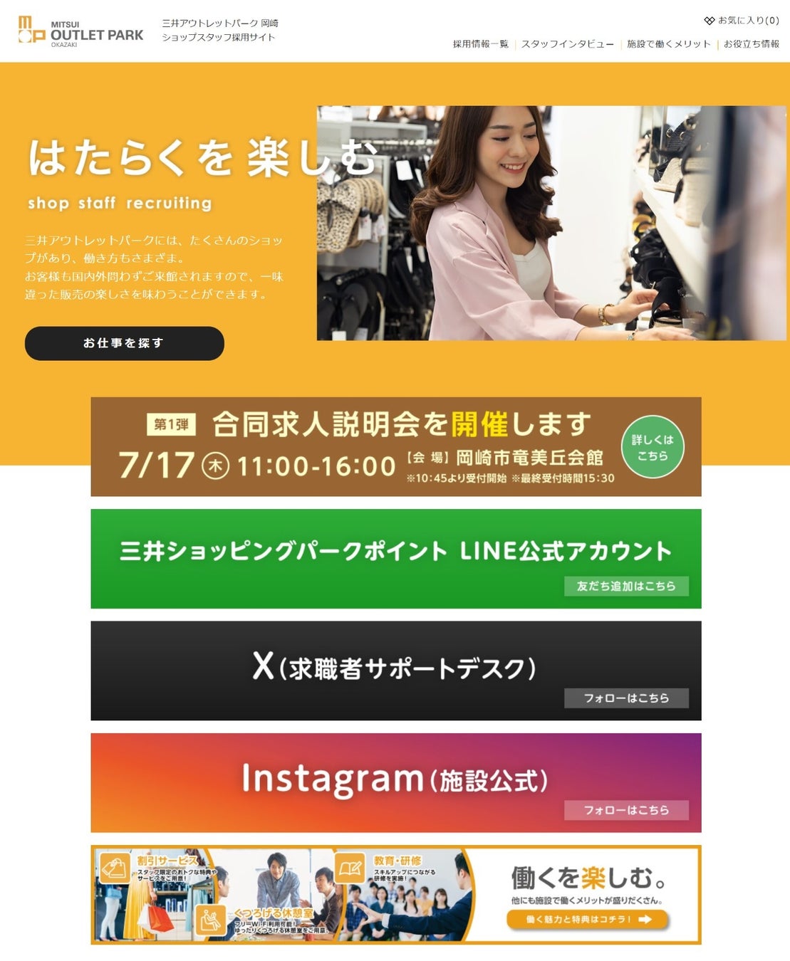 ※詳細は三井アウトレットパーク 岡崎スタッフ求人サイトをご覧ください。