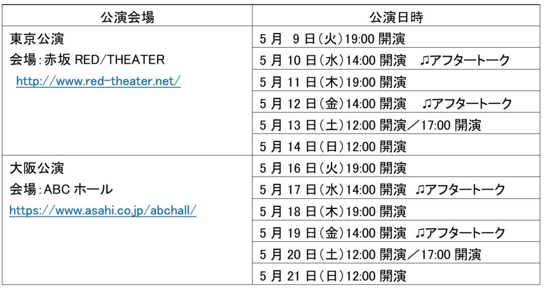 ・大阪公演:2023年5月16日(火)~5月21日(日) ABCホール