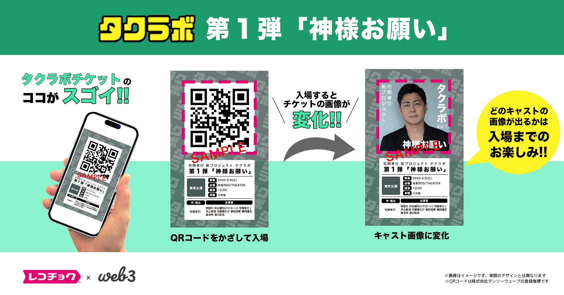 本公演は、紙チケットのように所有でき、電子チケットのように扱える「レコチョクチケット」を採用。宅間氏が「要はネット通販です」(引用:Instagram @takuma_ laboratory)とコメントしているように、 簡単に購入いただけます。