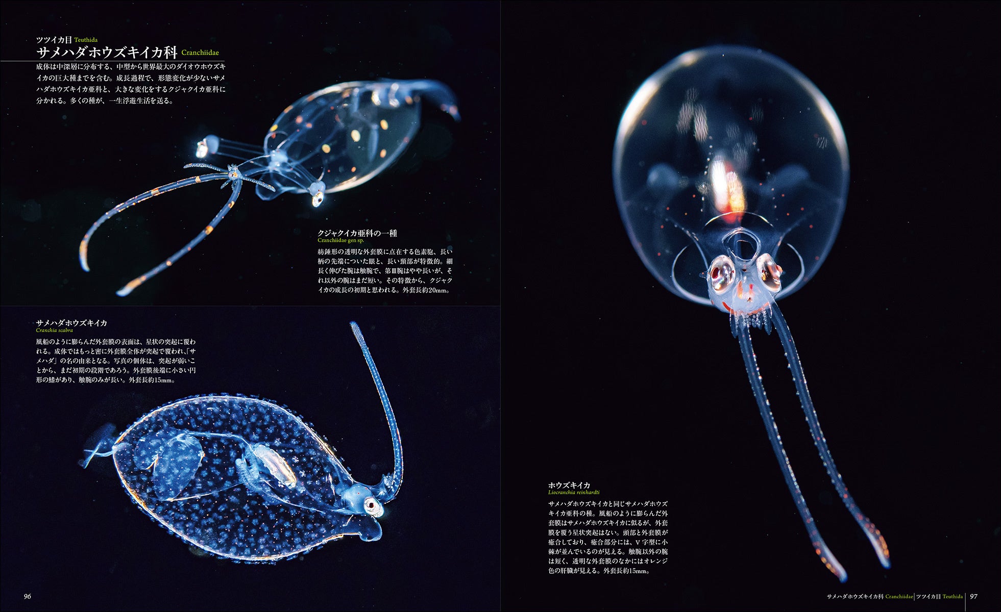 あるものはガラス細工のような精緻な体をもち、外敵の目から逃れながら、最新のカメラで捉えられれば宝石のような輝きを見せて、いま多くのダイバーたちの興味をかきたてる存在になっている。