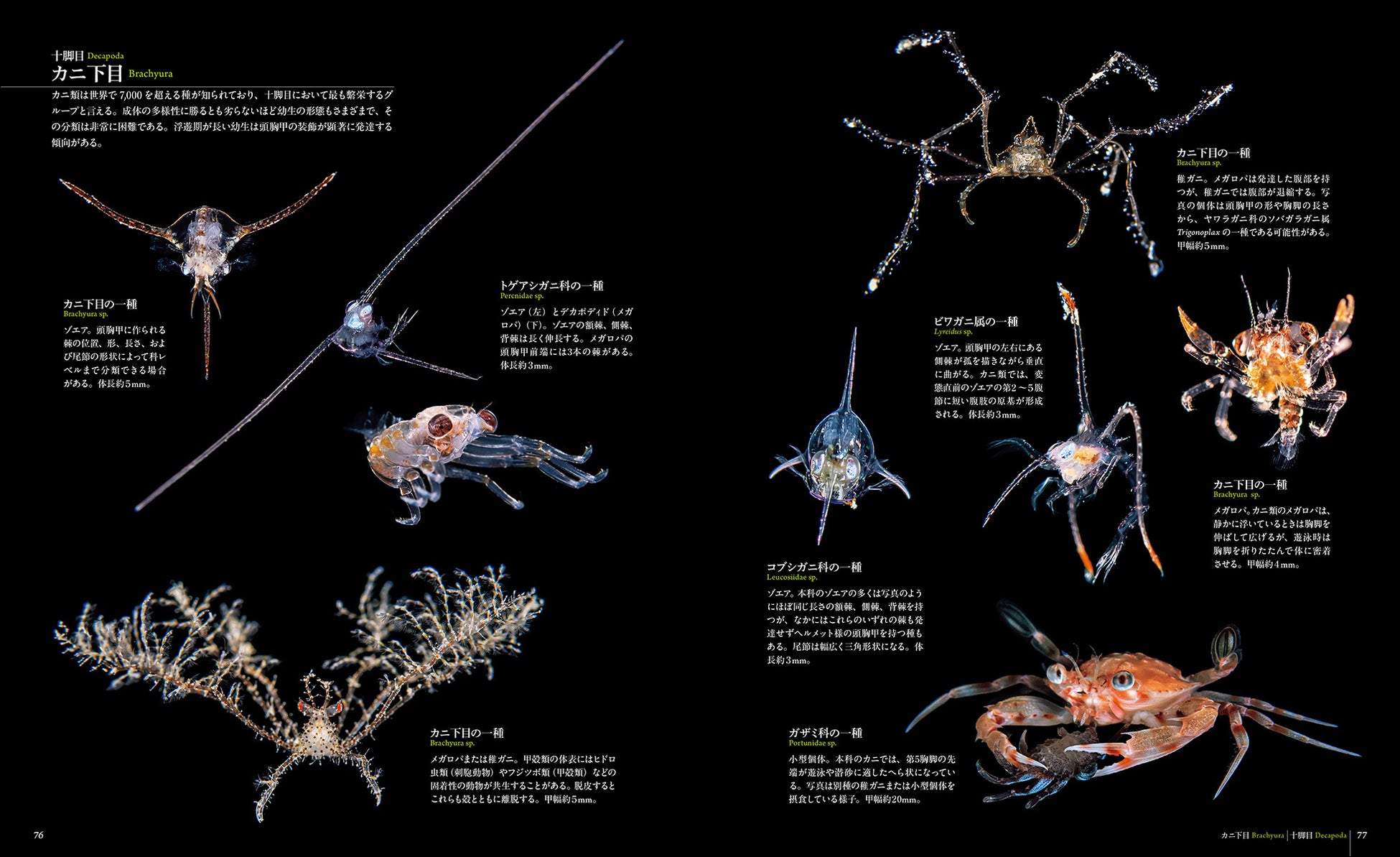本書は、海中に漂うさまざまな稚魚、カニ、エビ、イカ、タコ、クラゲなどの幼生・幼体が見せる興味深い姿を、多くは最新のマクロ撮影技術によって浮かびあがらせつつ、多くの科学者によってその生態を紹介する。