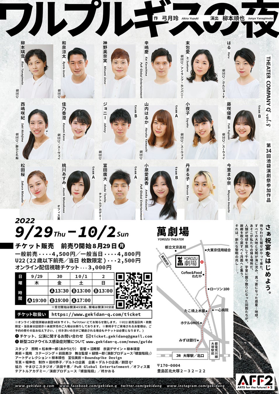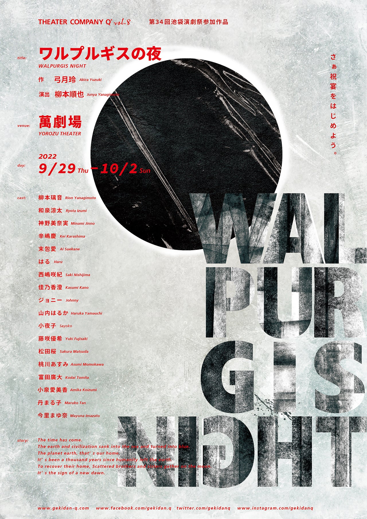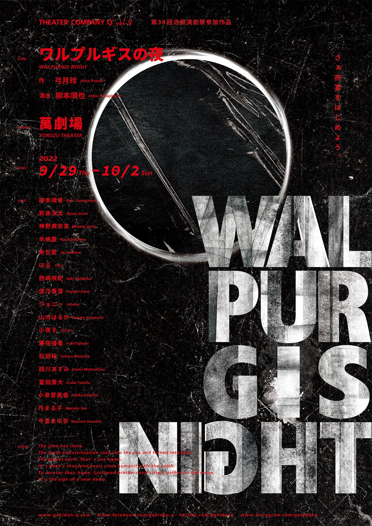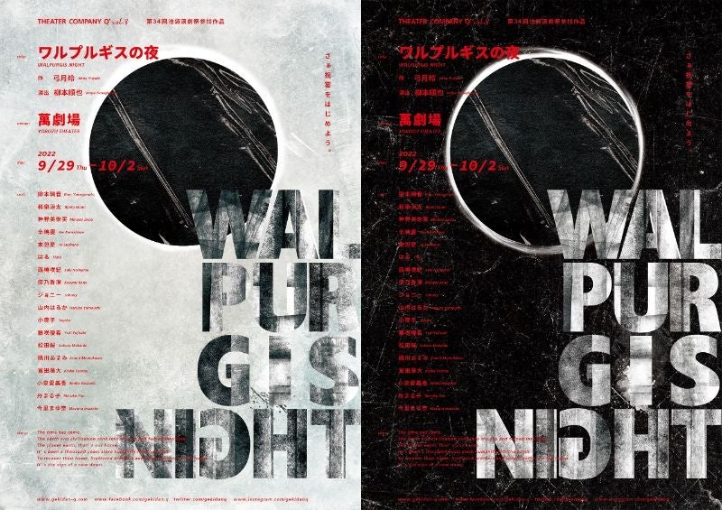 劇団Q+(主宰:柳本順也)主催、劇団Q+ 第8回本公演 『ワルプルギスの夜』が2022年9月29日 (木) ~2022年10月2日 (日)に萬劇場(東京都豊島区北大塚2-32-22)にて上演されます。