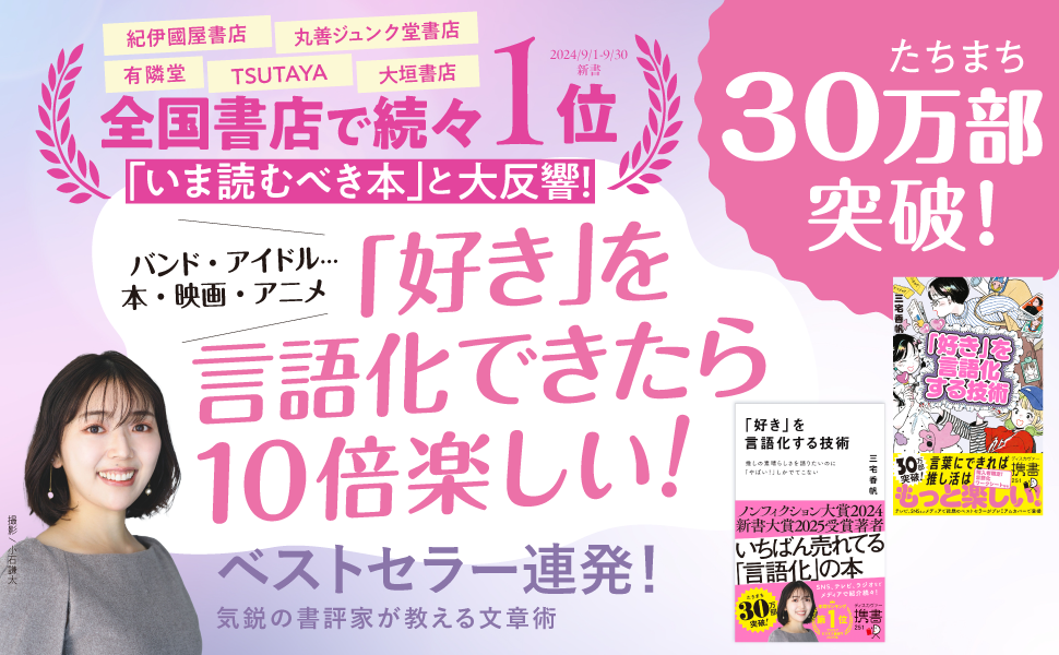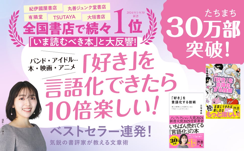 株式会社ディスカヴァー・トゥエンティワン(本社:東京都千代田区、代表取締役兼社長執行役員:谷口奈緒美)が2024年7月31日に刊行した、文芸評論家・三宅香帆氏による書籍『「好き」を言語化する技術』は、このたび30万部を突破いたしました。