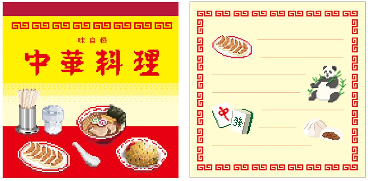 喫茶店や銭湯、中華料理店などの街の風景がピクセルアート風にデザインされたメモ。全4種。