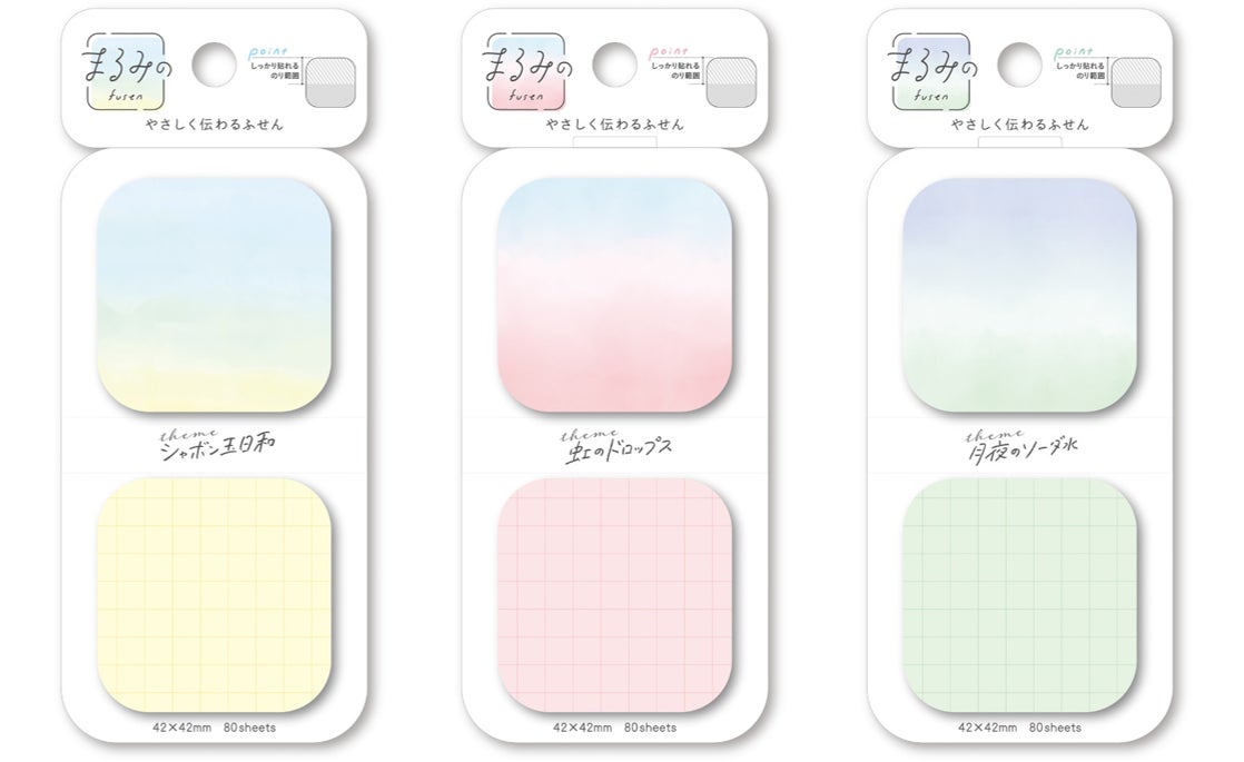 まるみのある形とやさしい色合いが特徴の「まるみのふせん」から、幻想的なグラデーションと