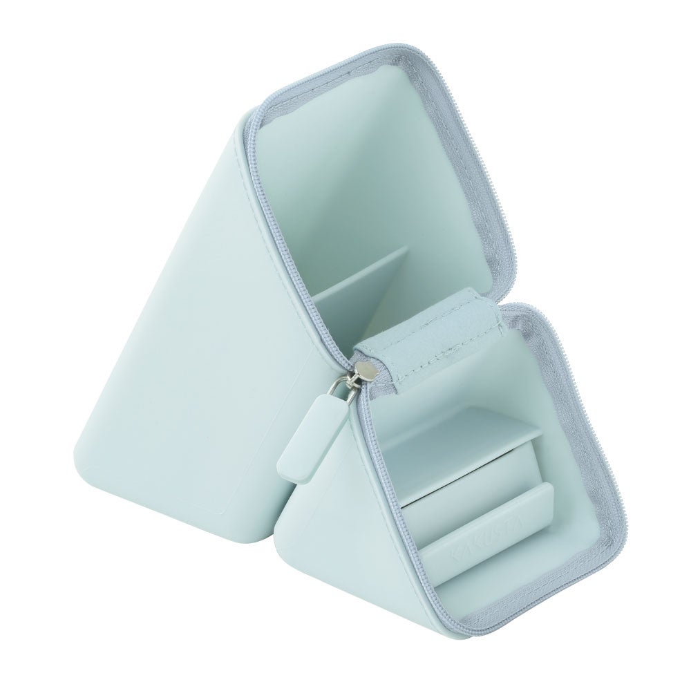 中身が見つけやすく取り出しやすい、60度の仕切りがついたペンケース。従来品よりも幅を広げて