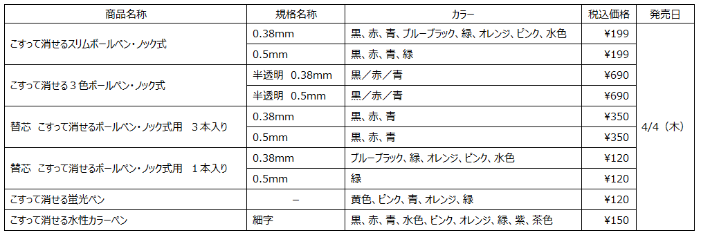 4/4(木)無印良品 こすって消せるペンシリーズ 新たに4種類 発売のお知らせ