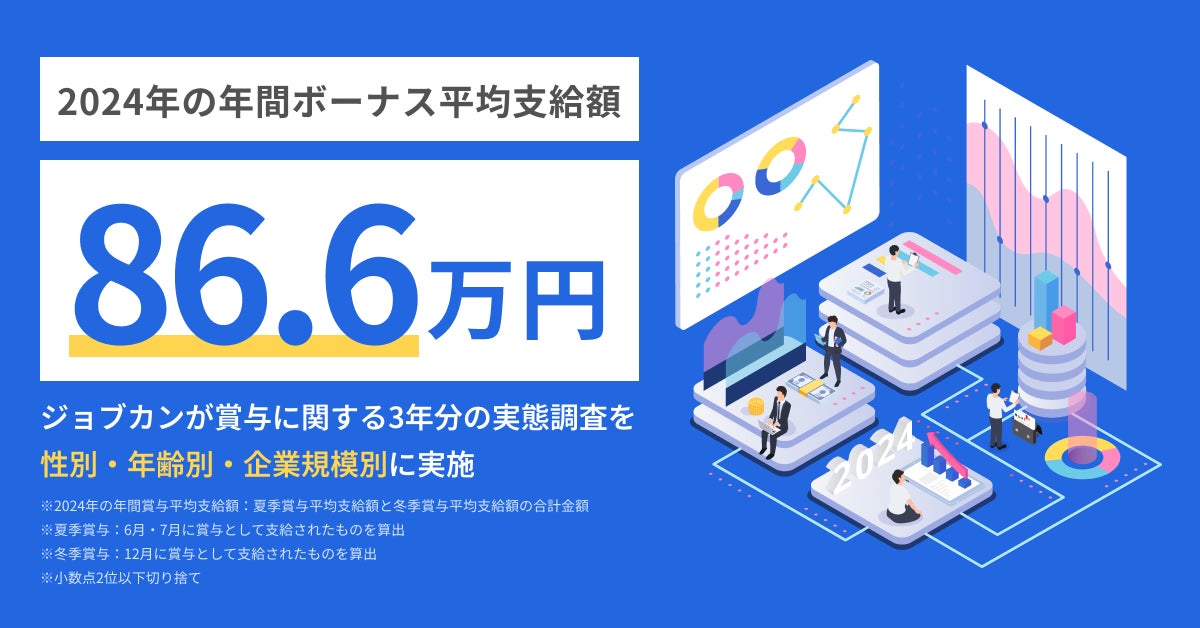 今回は、2024年の夏季賞与と冬季賞与に関する年間支給額や、過去3年間の支給額推移を性別・年齢別・企業規模別に集計し、その変化を可視化することで、現在の労働環境が抱える課題を明らかにし、「ジョブカン」シリーズを通じてその是正に寄与してまいります。