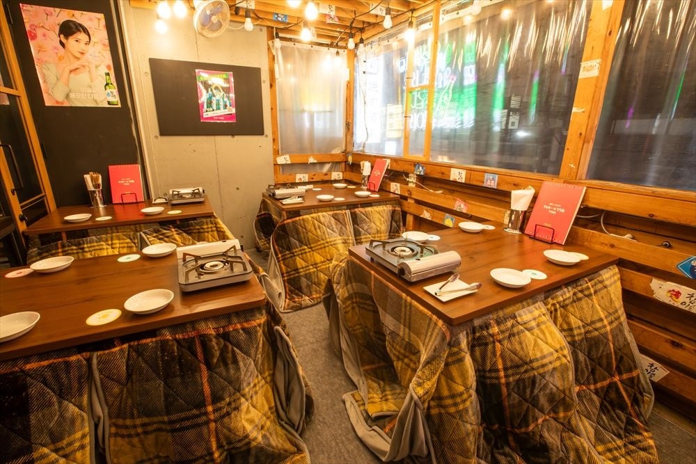 韓国屋台にも似た空間で「こたつ」でぬくぬくと温まりながら、鍋をつつくのも、また趣深い味わいが楽しめます。