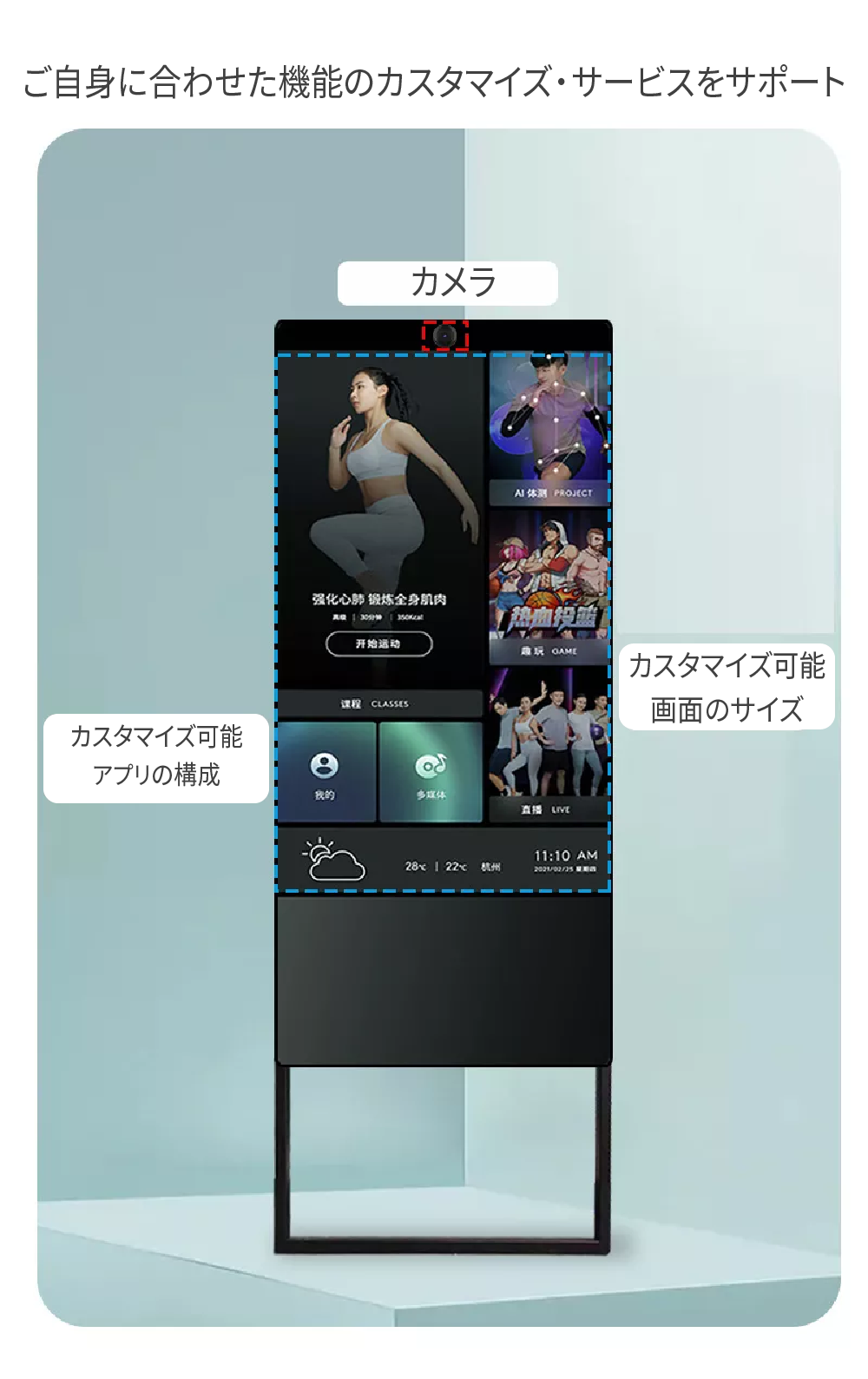 自宅でトレーニング/壁掛けフロアスタンド型/43インチ大画面/Android 11