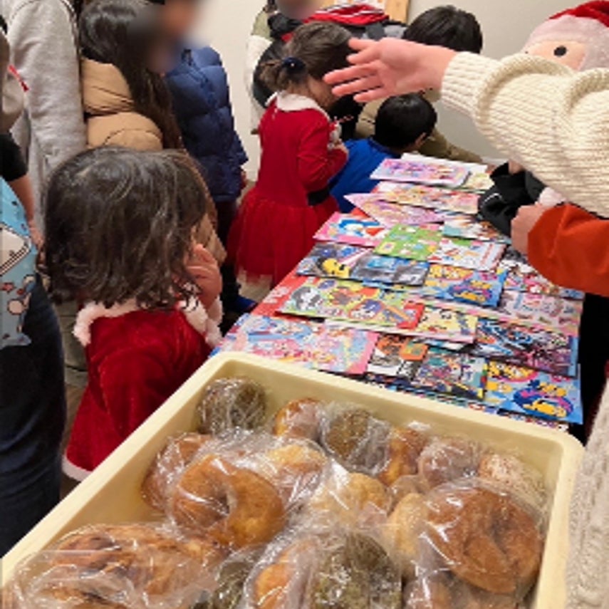 クリスマス前のこども食堂ということで、こどもたちへのクリスマスプレゼントに、商品券を使って、おもちゃやブロック、塗り絵、シャボン玉などを用意しました。こどもたちは、好きなプレゼントを選ぶために、ジャンケンで順番を決めて、みんなで笑顔で楽しそうに選んでいました。その様子を見て、私も本当に嬉しかったです。商品券で買ったおもちゃや塗り絵で遊ぶこどもたちの笑顔を見ることができて、本当に嬉しかったです。