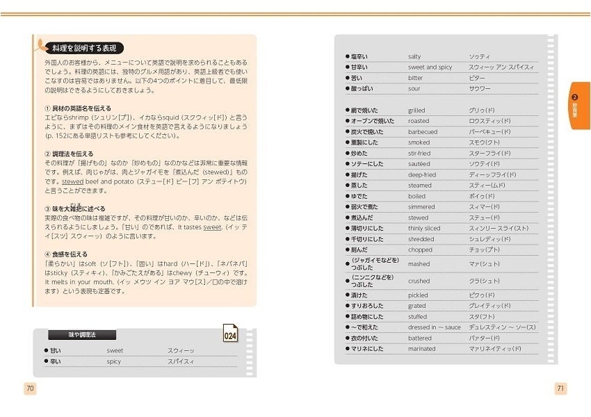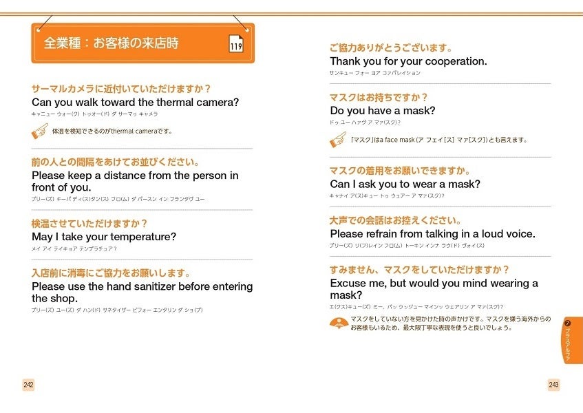 フレーズを使用する際に知っておきたい・気を付けたい情報も併せて記載しています。また、数字・食材・商品・薬の種類など、表現を広げる用語集や、フレーズを使った会話例も満載。