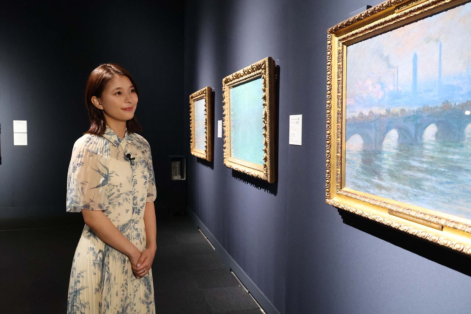 《睡蓮の池》については、「まず目に入ってきた瞬間にわっとなる。次に近づいてみると、これぐらいの太さの筆で描いたんだ、こんなにたくさんの色を使ってるんだ、と細かい部分に気づく。また引いてみると、それらがひとつの風景になってくる。近づいたり、遠くからみたりを繰り返すのがおすすめ」と鑑賞法を伝授。また、〈ウォータールー橋〉の連作について、「複数の美術館から借りた絵を、同じ空間でみることができることの贅沢。同じ場所でも、違う時間、違う天候でこんなにも見え方が違うんだと気づかされた」といいます。
