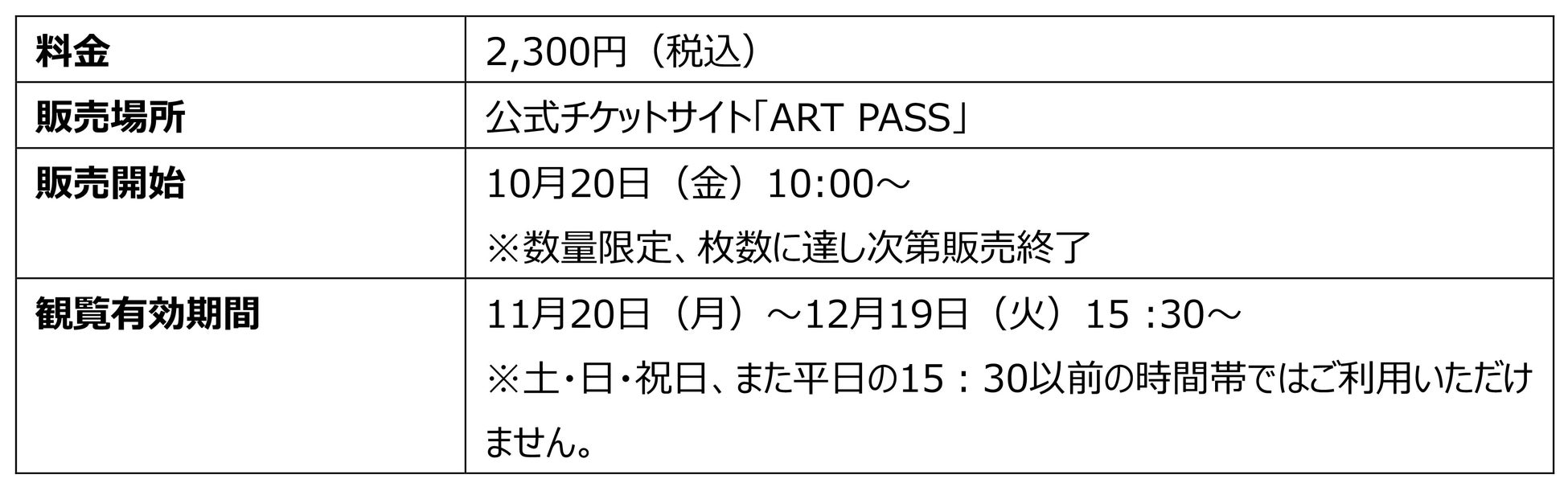 主なチケット販売場所:●公式チケットサイト「ART PASS」 ●産経iD ●フジテレビダイレクト ●チケットぴあ