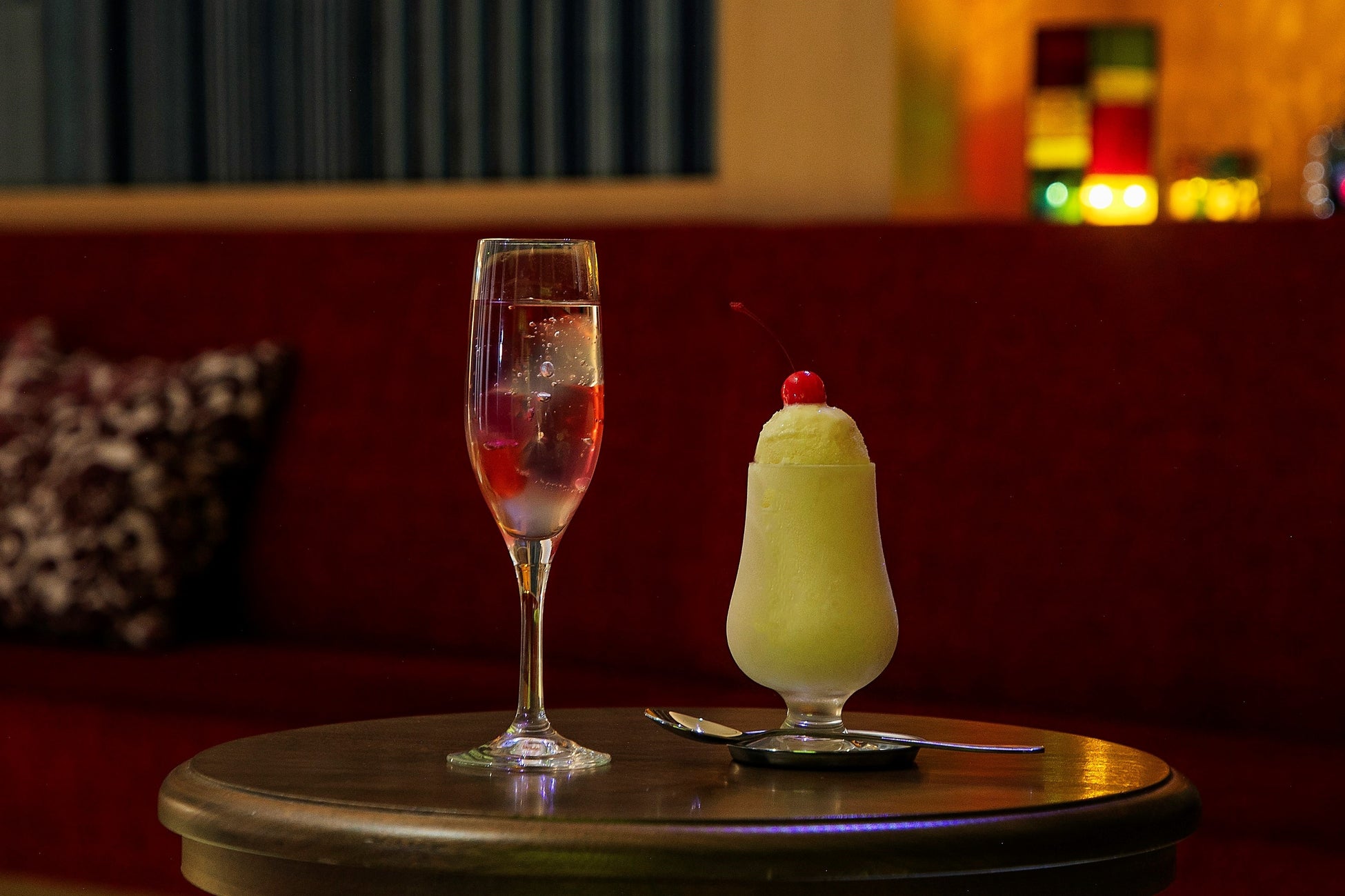 「ステンドグラスカクテル」とご当地スイーツ「ミルクセーキ」を味わう