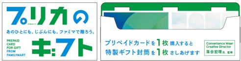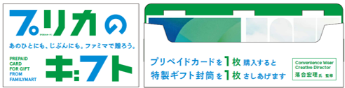 そのような中、このたび、多種多様な使い方ができるプリペイドカードをギフトとしてお贈りできる「プリカのギフト」を展開いたします。「プリカのギフト」を購入すると受け取れる特製ギフト封筒は、ファミリーマートオリジナルアパレルブランド「コンビニエンスウェア」のデザイナーであるファッションデザイナー落合宏理氏が手がけており、贈り物のあたたかさを伝えるデザインとなっております。また、封筒は手軽にギフトとして活用いただけるよう、プリペイドカード売場にて展開いたします。