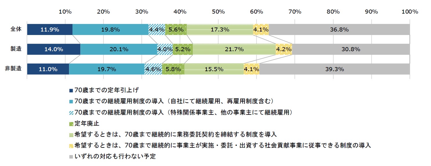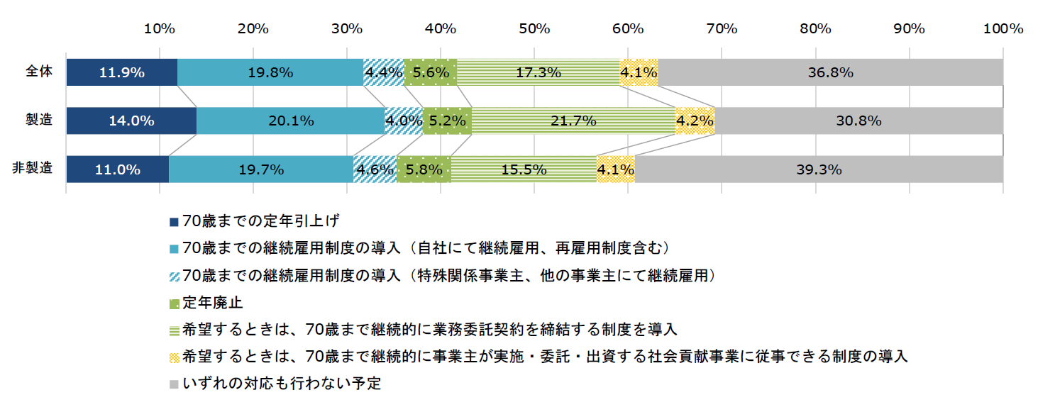 【図5】2021年4月に施行された「70歳までの就業機会確保(改正高年齢者雇用安定法)」の努力義務に関して、どのような対応を行ったか