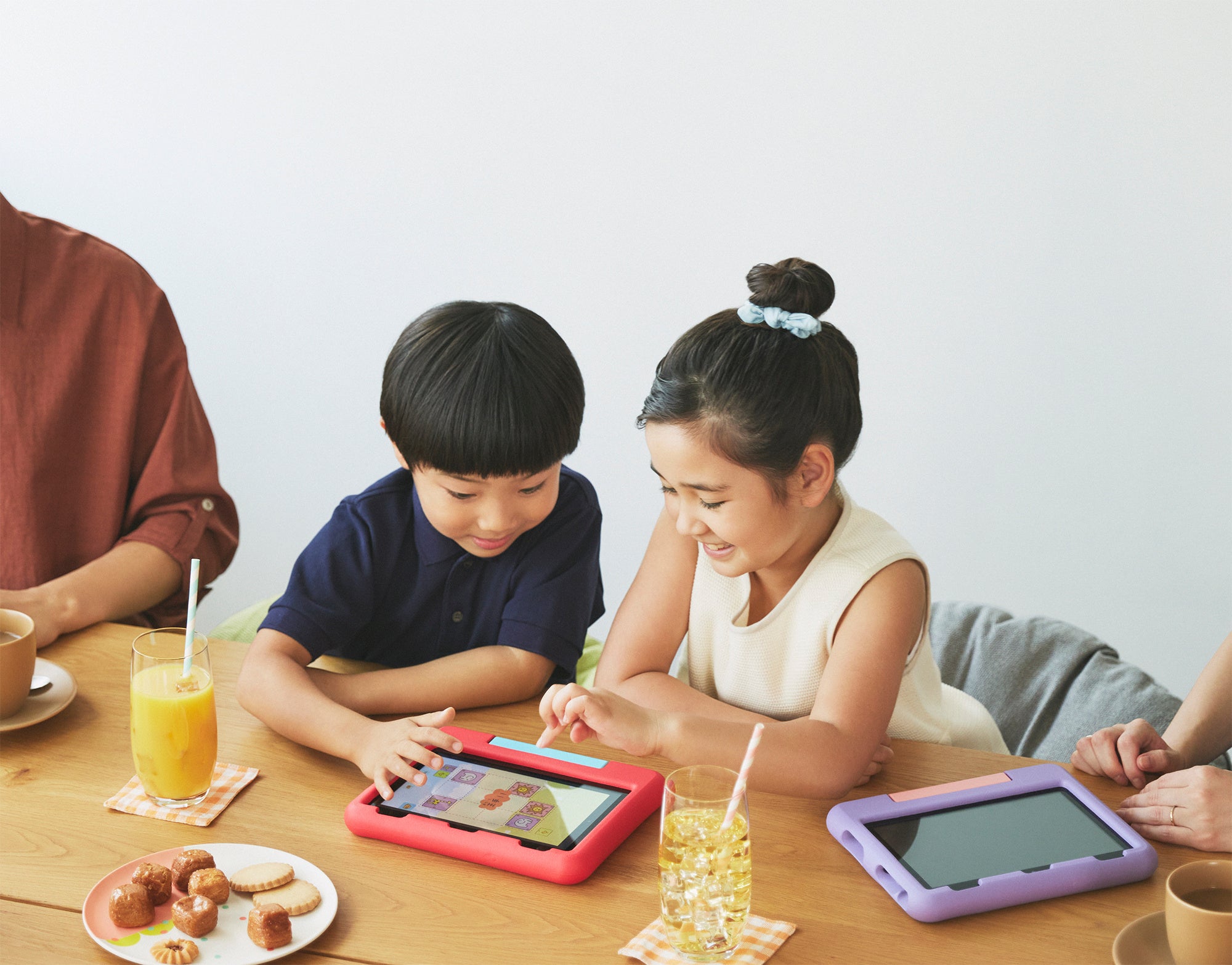 また、キッズモデルではAmazon Kids+が1年間追加料金なしでご利用いただけます。使い放題期間終了後は、プライム会員のお客様は、月額480円、プライム会員以外のお客様は月額980円でお楽しみいただけます。尚、本サブスクリプションサービスは、Fireタブレットシリーズキッズモデル、Fire TVシリーズ、Kindleキッズモデルシリーズ、iOS、Androidデバイスなどでもご利用いただけます。