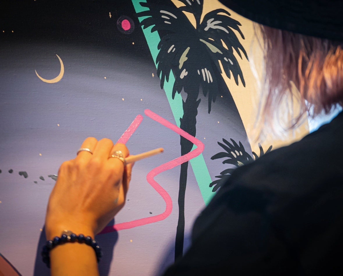 湘南のアーティストAMI OTSUKA個展 「SPACE OASIS」 8LOUNGEを彩るアート空間でオアシスにいるような気分に