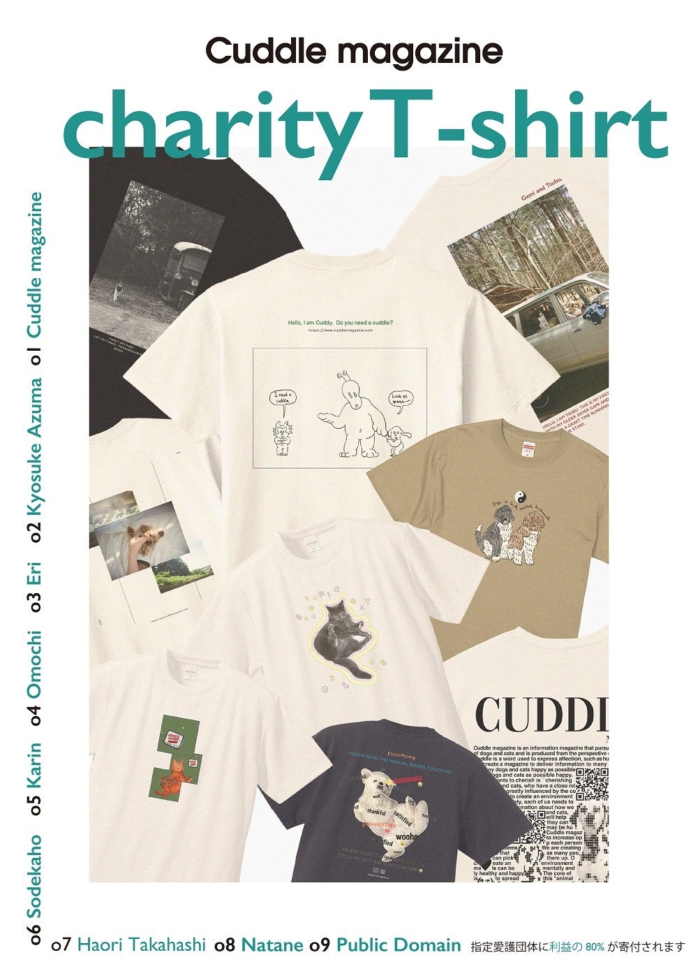 そで山かほ子さんや高橋春織さんなど、8名の愛犬家・愛猫家のアーティストとカドルマガジンがコラボレーションして制作したチャリティーTシャツをご紹介します。