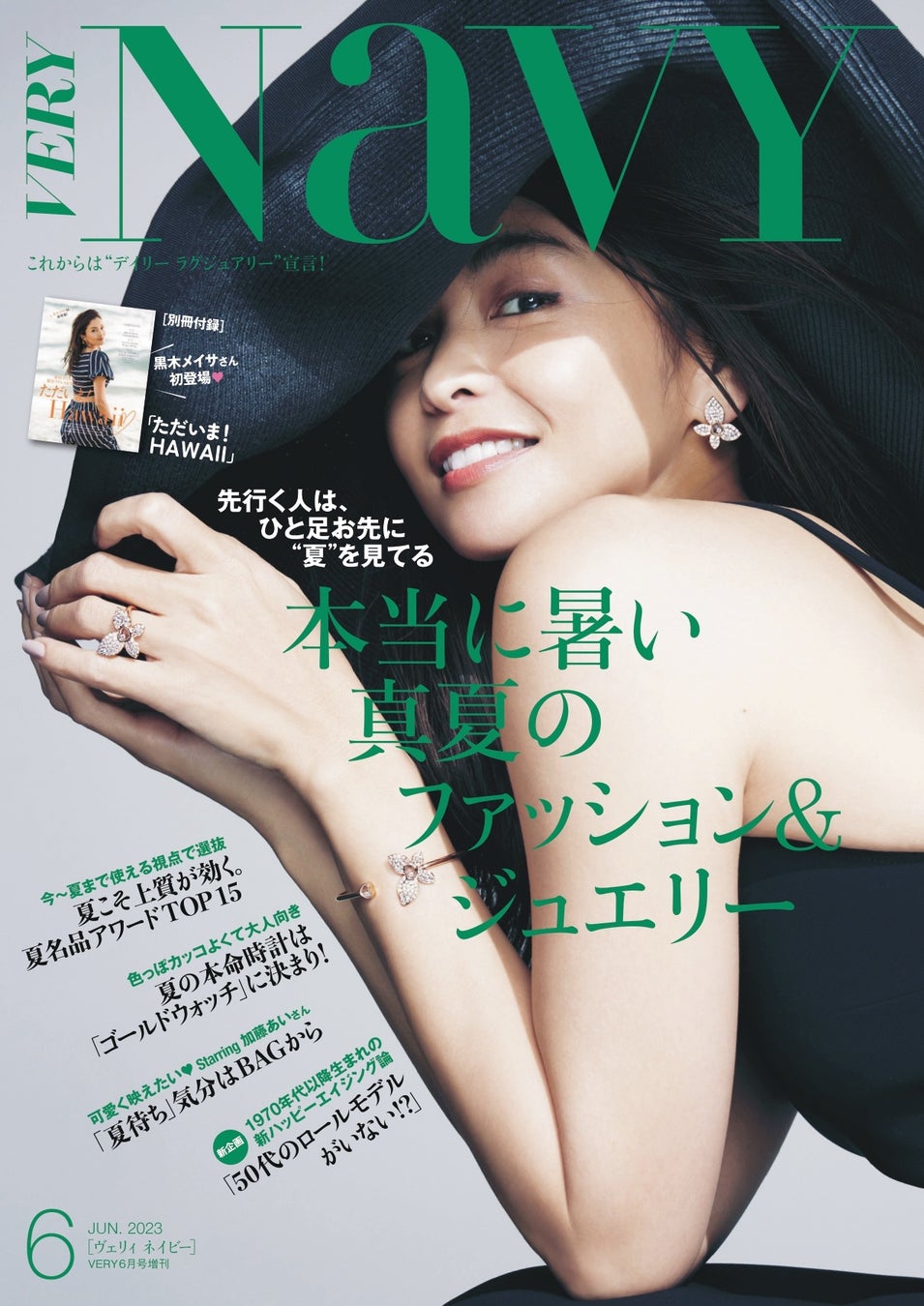 『VERY NaVY』6月号本誌では「本当に暑い真夏のファッション&ジュエリー」を大特集。カバーモデルの滝沢眞規子ほか、満島ひかりさん、加藤あいさん、板谷由夏さんなど豪華な顔ぶれでひと足先に夏ファッションをクローズアップする。
