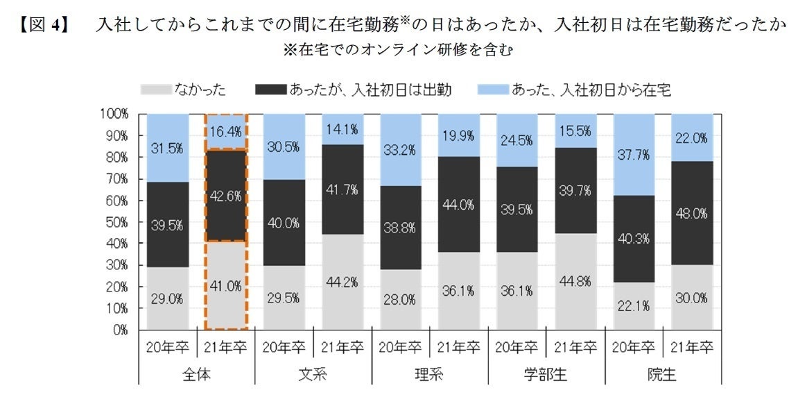 【図4】入社してからこれまでの間に在宅勤務※の日はあったか、入社初日は在宅勤務だったか※在宅でのオンライン研修を含む