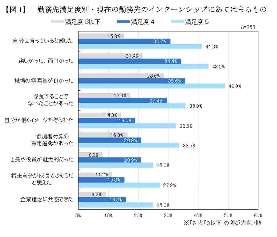 【図1】勤務先満足度別・現在の勤務先のインターンシップにあてはまるもの