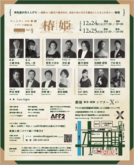百合の会主催、『オペラチックナイトVol.9 オペラ「椿姫」』が2022年12月24日 (土) ~2022年12月25日 (日)にシアターX(シアターカイ)(東京都墨田区両国 2-10-14両国シティコア内)にて上演されます。
