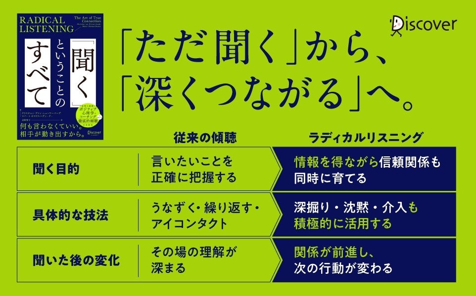 株式会社ディスカヴァー・トゥエンティワン(本社:東京都千代田区、代表取締役社長執行役員:谷口奈緒美)は2026年4月24日に『RADICAL LISTENING 「聞く」ということのすべて』(クリスチャン・ヴァン・ニューワーバーグ、ロバート・ビスワス=ディーナー著、星野智子訳)を刊行しました。