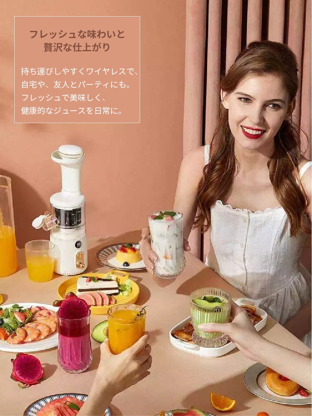 - 美味しく贅沢な搾りたてジュースを楽しもう! よりヘルシーな日常に
