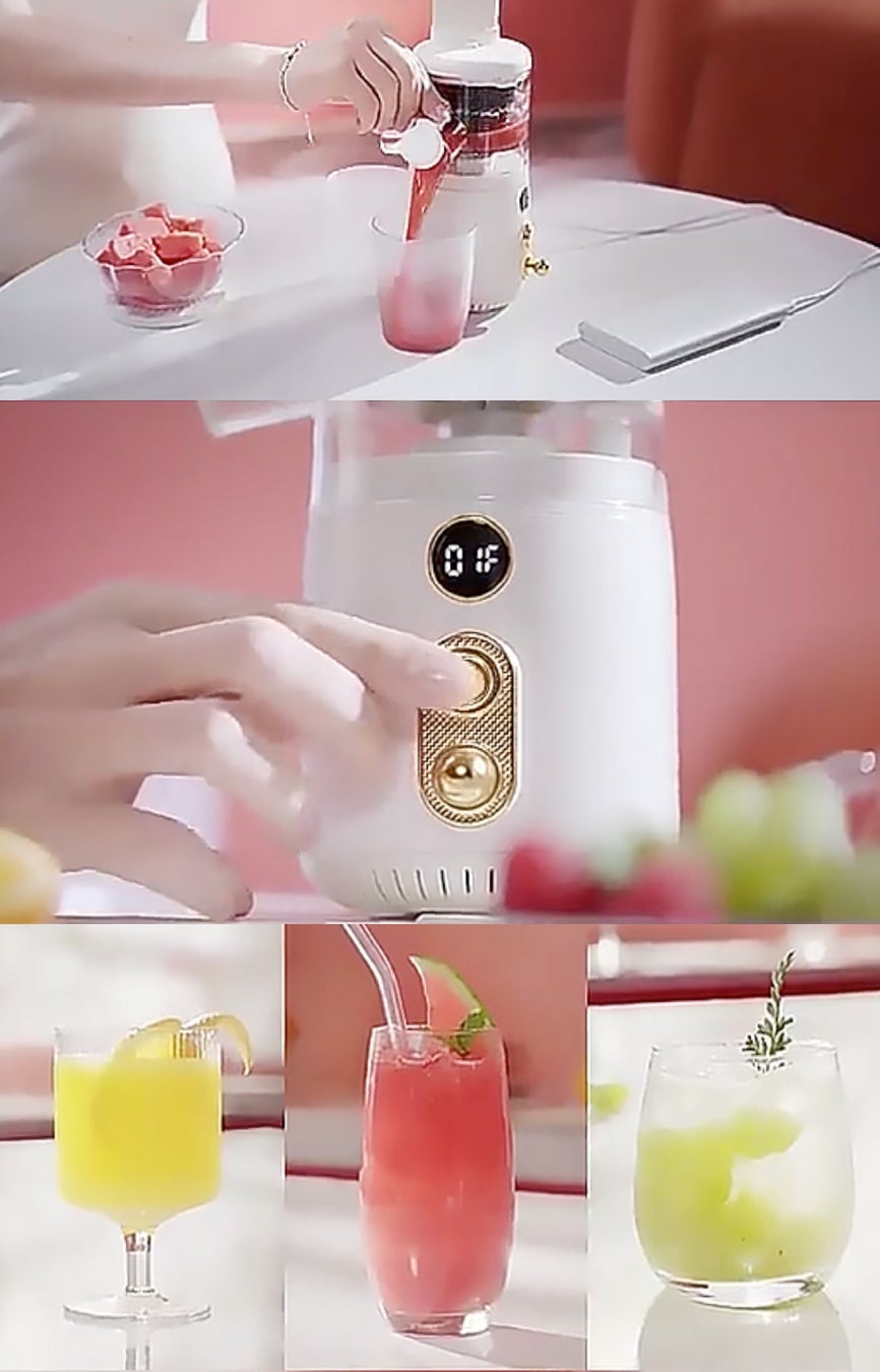 ●スクイーズ式のジューサー、ワイヤレスでどこでもフレッシュジュースが作れる