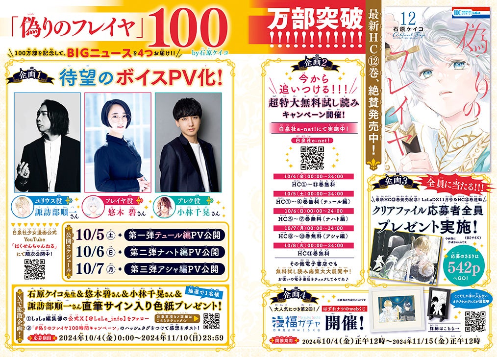 「偽りのフレイヤ」100万部突破記念!BIGニュースを4つお届け!!