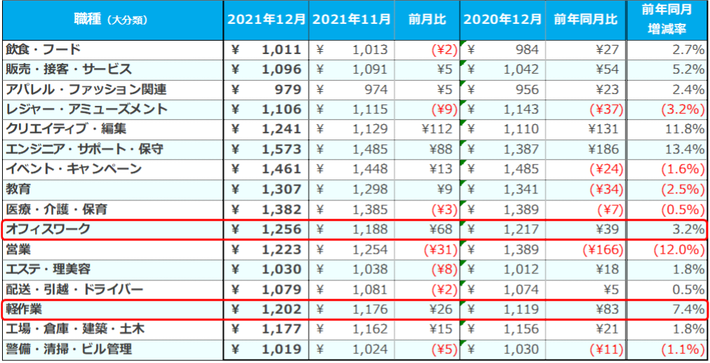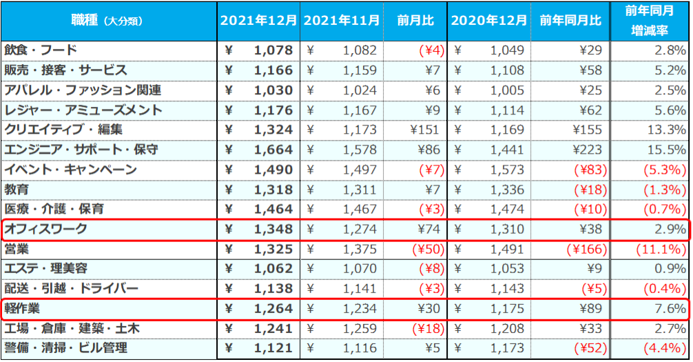『2021年12月度 アルバイト・パート平均時給レポート』