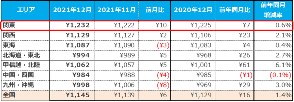 - 東京都 1,281円(前月1,276円、前年同月1,314円)