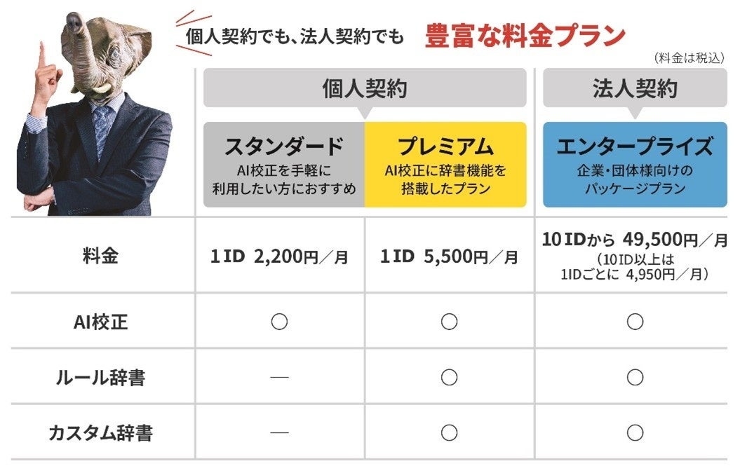 これまで文章校正に時間がかかっていた方の業務効率改善や誤植、不適切表現によるブランド棄損や炎上などのリスクマネジメントにも貢献します。個人契約については、14日間の無料トライアルを実施中です。