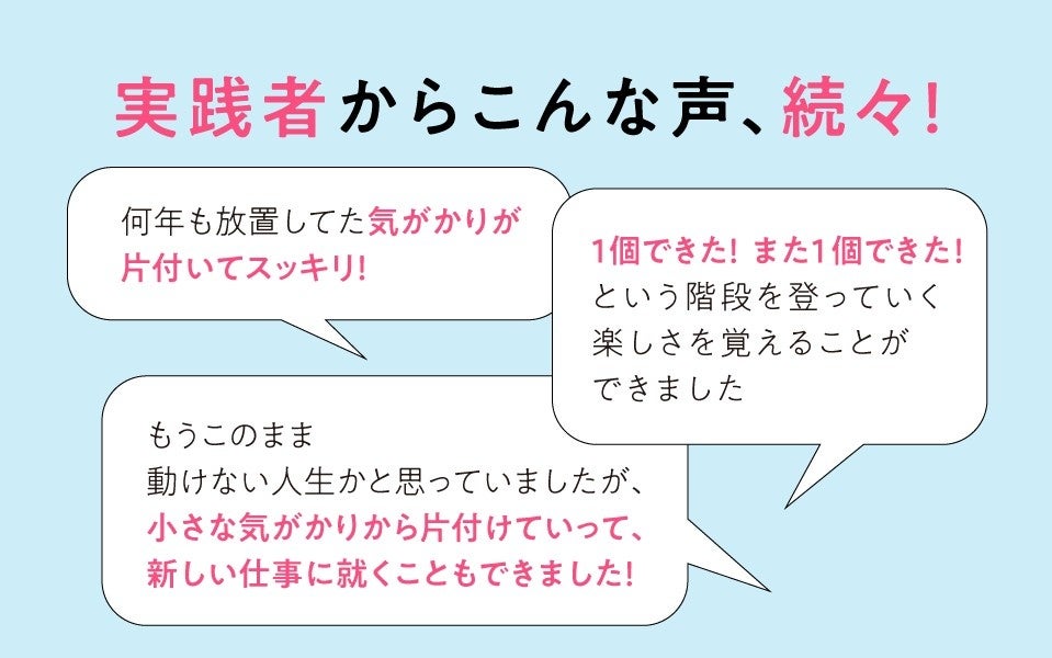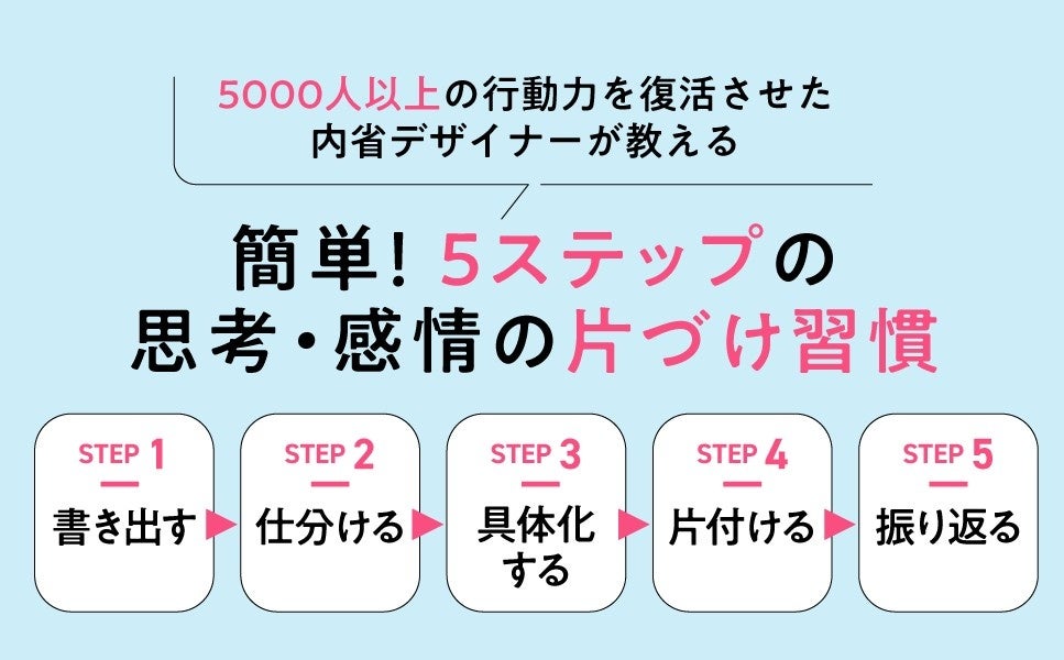 私たちの頭は、大小さまざまな「気がかり」を抱えているだけで、膨大なエネルギーを消費し続けています。逆に言えば――気がかりさえ消えれば、自然と人は動き出します。本書の5ステップは、まさにそのための「思考と感情の片づけメソッド」です。