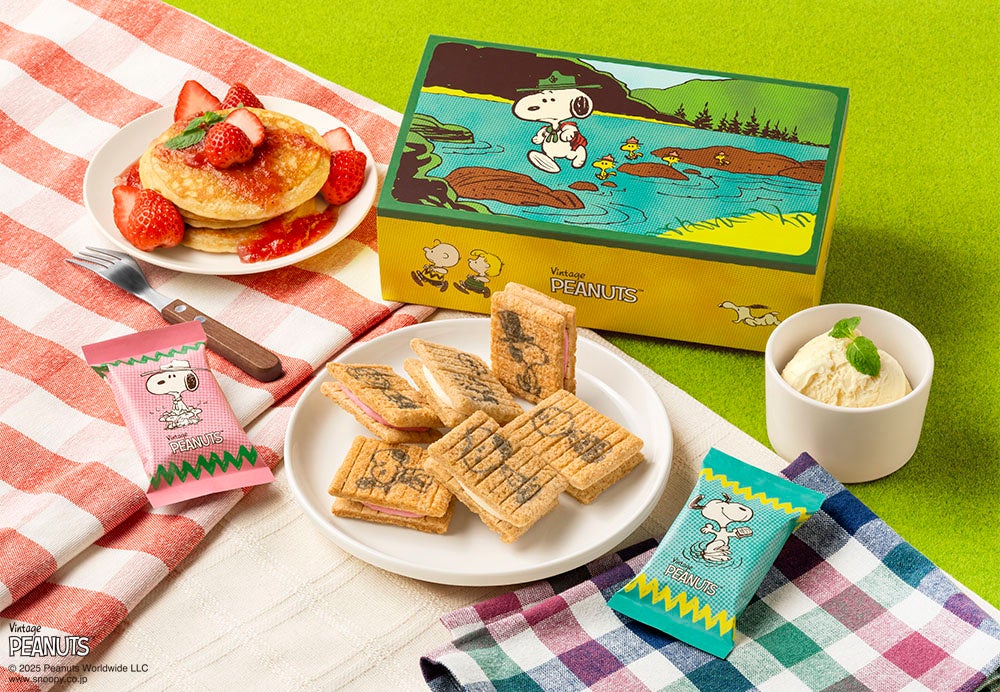 『ストロベリーパンケーキ風』は春夏だけの季節限定フレーバー。あまずっぱいストロベリーショコラを、メープル香るパンケーキ風シリアル生地でサンドしました。ビーグル・スカウトを主役にした、アウトドアテイストが可愛い詰合せボックスで登場します。『スヌーピー シュガーバターサンドの木』と『ストロベリーパンケーキ風』、ぜひ食べ比べてみてくださいね。