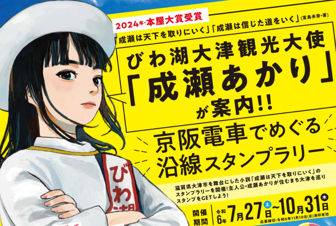 2024年本屋大賞受賞『成瀬は天下を取りにいく』 びわ湖大津観光大使「成瀬あかり」が案内!「京阪電車でめぐる沿線スタンプラリー」開催!!「成瀬は天下を取りにいくラッピング電車」運行!!