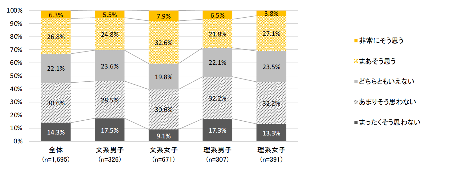 ○有効回答数/1,695名(文系男子326名 理系男子307名 文系女子671名 理系女子391名)