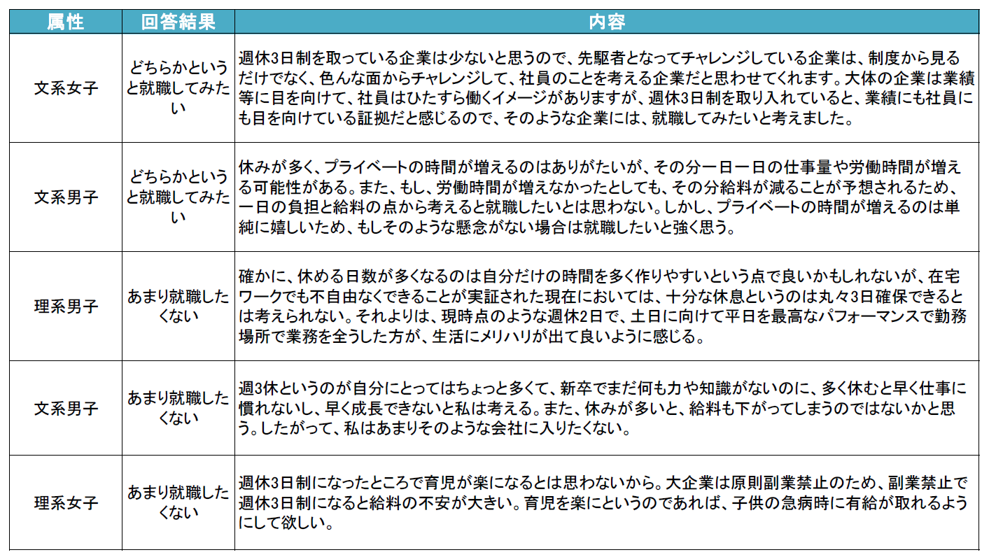 【図4】週休3日制を導入している企業について就職してみたいか回答した理由(自由回答)