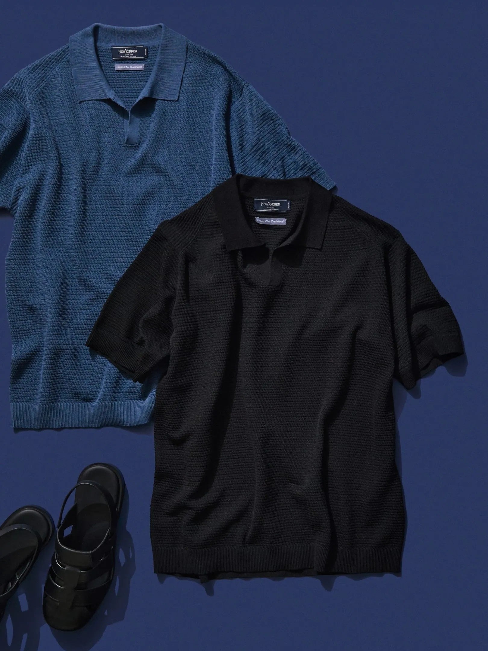 ネックラインと立体感あるリンクス編みが、カジュアルスタイルにさり気なく品をもたらします。ドライタッチの軽やかな着心地で快適にご着用いただけます。