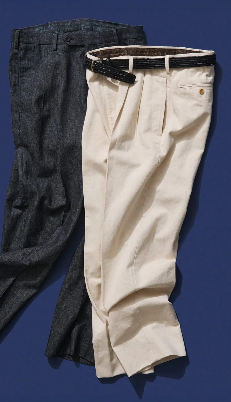 柔らかな風合いのオーガニックコットンで仕立てたデニムパンツ。ツータックが生む立体感とワイドシルエットが今の気分に合う着こなしを演出します。