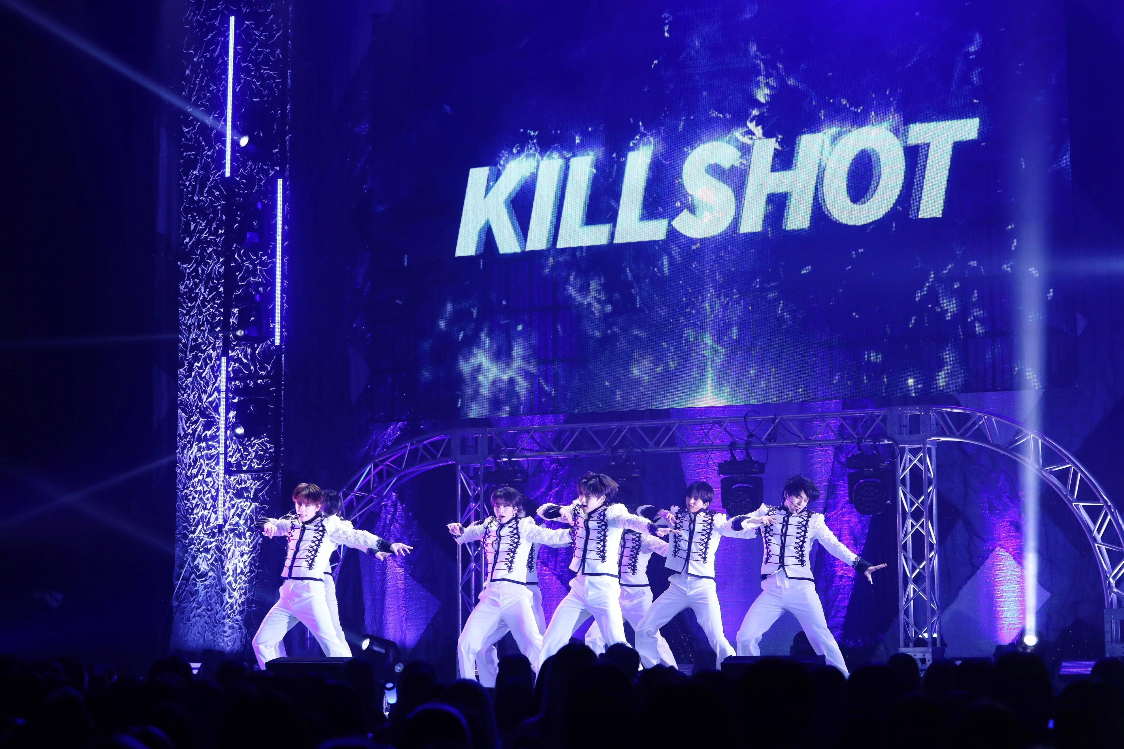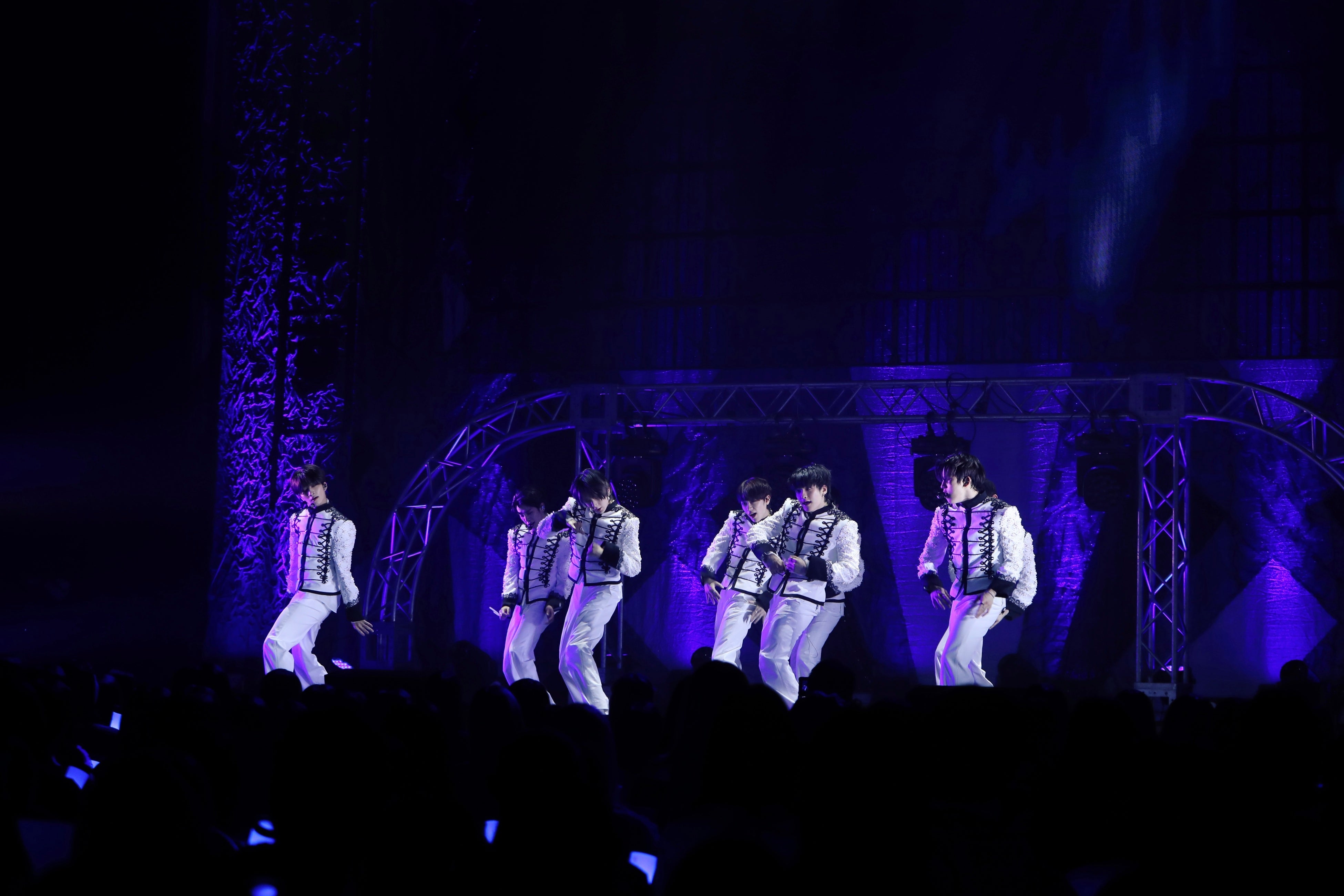 ブラックレザーの男らしい衣装で登場した8人。「Attosecondo」「Lock Down」に続き、妖艶な魅力とハードなラップで観客を圧巻とさせた「Lone Wolf」を披露しました。