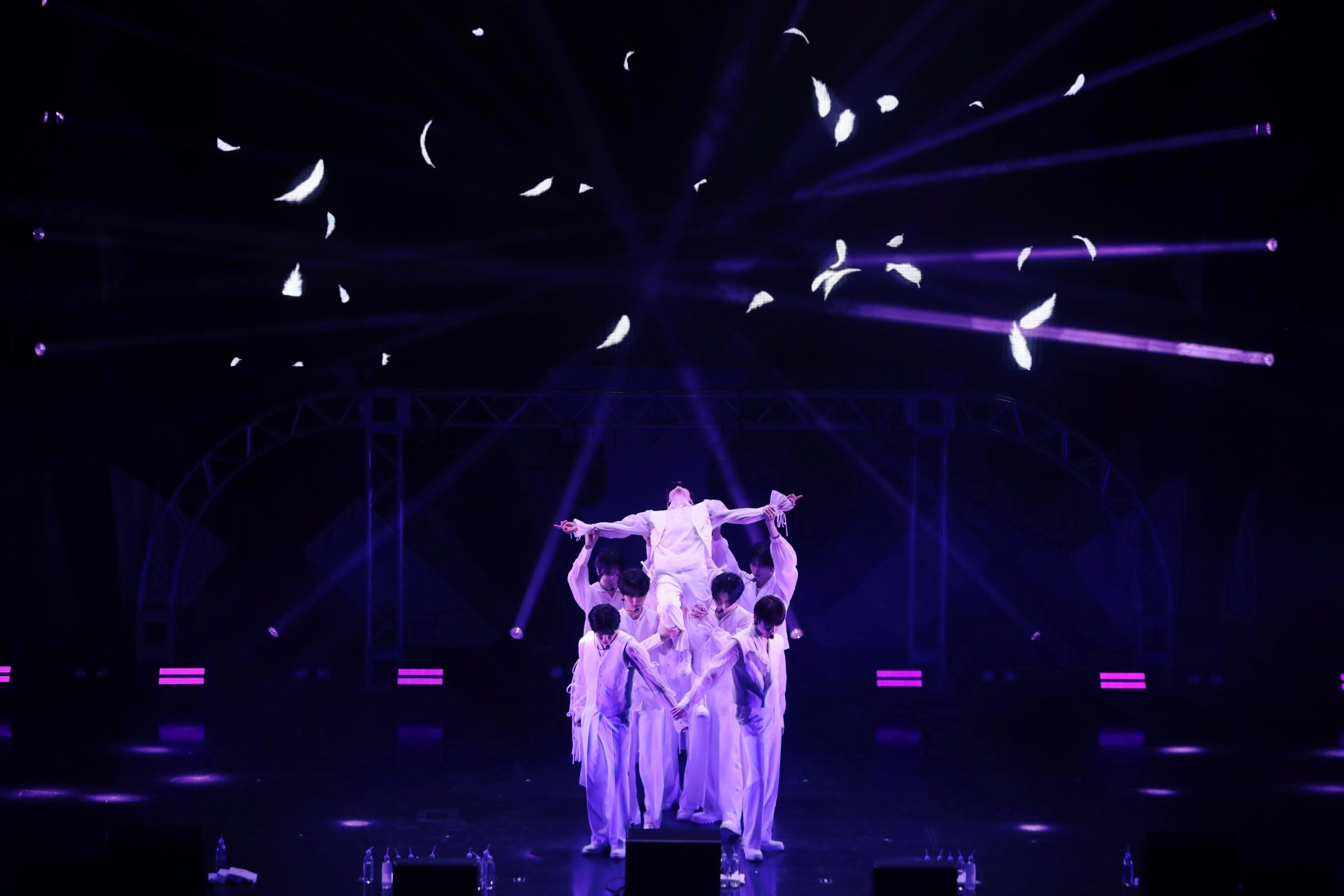 そして、EPEXは2組に分かれてそれぞれコメントとユニット曲を披露。KEUM、BAEKSEUNG、AYDEN、JEFFのRap Unitが「Dominate」を、WISH、MU、A-MIN、YEWANGのVocal Unitが「My Secret」を披露。さらには3度目の衣装チェンジ。華やかで神秘的な衣装を持つ白いシースルーの衣装に。その衣装の魅力が最大限に活きる、「Goodbye, My First Love」で天使を模した演出が披露されました。